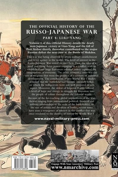 Volume 4 of this Official History details the dearly won Japanese victory at Liaoyang and the fall of Port Arthur shortly thereafter contributed to the major Russian defeat the next year at the Battle of Mukden. This was war being observed by every military establishment and news agency in the world. The level of interest in the Russo-Japanese War rested on two facts: First, the idea of a small and rising Asian power engaging in a conflict with an established and huge European colonial power captured the imaginations of everyone. The other substantial issue was the use of weapons that were the product of a century of industrial development. The conclusions of pre-World War I studies revealed that the battlefield had become intensely lethal, for which the belligerents were not well prepared in any aspect. Moreover, the defeat of Imperial Russia infused a level of hope and energy to struggle for liberation into the people of colour throughout the colonial world. Because of the far-reaching global implications of the war, factors ranging from international political, financial and military relationships to the scale of the battlefield(s), to the size of armies and duration of battles, recent times have seen a resurgence in this conflict that was once rendered to the dustbin of history by World War I.
