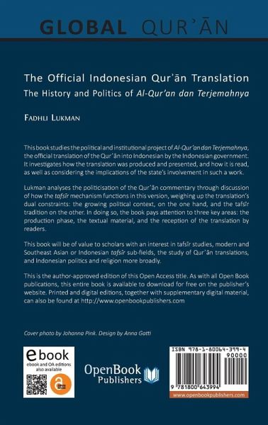 This book studies the political and institutional project of Al-Qur'an dan Terjemahnya, the official translation of the Qur¿¿n into Indonesian by the Indonesian government. It investigates how the translation was produced and presented, and how it is read, as well as considering the implications of the state's involvement in such a work. Lukman analyses the politicisation of the Qur¿¿n commentary through discussion of how the tafs¿r mechanism functions in this version, weighing up the translation's dual constraints: the growing political context, on the one hand, and the tafs¿r tradition on the other. In doing so, the book pays attention to three key areas: the production phase, the textual material, and the reception of the translation by readers. This book will be of value to scholars with an interest in tafs¿r studies, modern and Southeast Asian or Indonesian tafs¿r sub-fields, the study of Qur¿¿n translations, and Indonesian politics and religion more broadly.