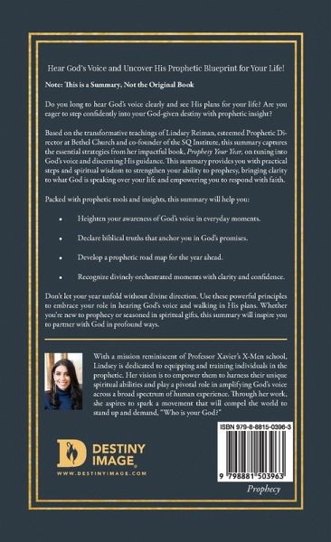 Hear God's Voice and Uncover His Prophetic Blueprint for Your Life!Note: This is a Summary, Not the Original BookDo you long to hear God's voice clearly and see His plans for your life? Are you eager to step confidently into your God-given destiny with prophetic insight?Based on the transformative teachings of Lindsey Reiman, esteemed Prophetic Director at Bethel Church and co-founder of the SQ Institute, this summary captures the essential strategies from her impactful book, Prophesy Your Year, on tuning into God's voice and discerning His guidance. This summary provides you with practical steps and spiritual wisdom to strengthen your ability to prophesy, bringing clarity to what God is speaking over your life and empowering you to respond with faith.Packed with prophetic tools and insights, this summary will help you: * Heighten your awareness of God's voice in everyday moments. * Declare biblical truths that anchor you in God's promises. * Develop a prophetic road map for the year ahead. * Recognize divinely orchestrated moments with clarity and confidence. Don't let your year unfold without divine direction. Use these powerful principles to embrace your role in hearing God's voice and walking in His plans. Whether you're new to prophecy or seasoned in spiritual gifts, this summary will inspire you to partner with God in profound ways.