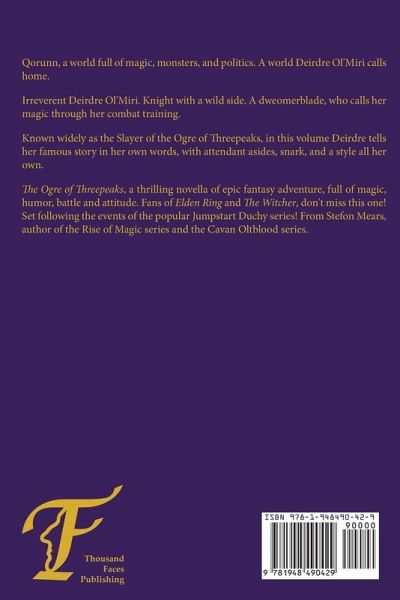 Qorunn, a world full of magic, monsters, and politics. A world Deirdre Ol'Miri calls home. Irreverent Deirdre Ol'Miri. Knight with a wild side. A dweomerblade, who calls her magic through her combat training. Known widely as the Slayer of the Ogre of Threepeaks, in this volume Deirdre tells her famous story in her own words, with attendant asides, snark, and a style all her own. The Ogre of Threepeaks, a thrilling novella of epic fantasy adventure, full of magic, humor, battle and attitude. Fans of Elden Ring and The Witcher, don't miss this one! Set following the events of the popular Jumpstart Duchy series! From Stefon Mears, author of the Rise of Magic series and the Cavan Oltblood series.