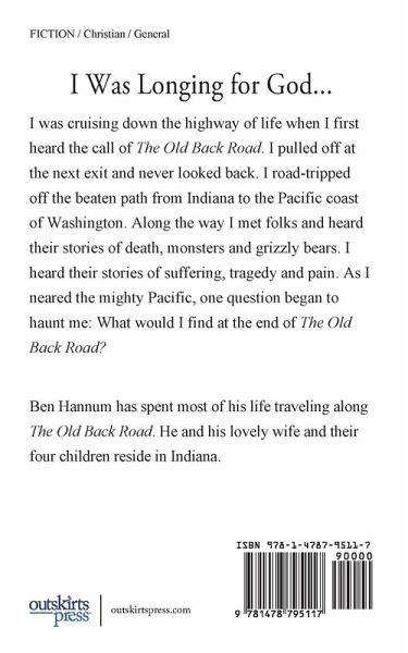 I was longing for God... I was cruising down the highway of life when I first heard the call of The Old Back Road. I pulled off at the next exit and never looked back. I road-tripped off the beaten path from Indiana to the Pacific coast of Washington. Along the way I met folks and heard their stories of death, monsters and grizzly bears. I heard their stories of suffering, tragedy and pain. As I neared the mighty Pacific, one question began to haunt me: What would I find at the end of The Old Back Road?