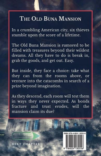 In a crumbling American city, six thieves stumble upon the score of a lifetime. The Old Buna Mansion is rumored to be filled with treasures beyond their wildest dreams. All they have to do is break in, grab the goods, and get out. Easy. But inside, they face a choice: take what they can from the rooms above, or venture into the catacombs in search of a prize beyond imagination. As they descend, each room will test them in ways they never expected. As bonds fracture and trust erodes, will the mansion claim its due?