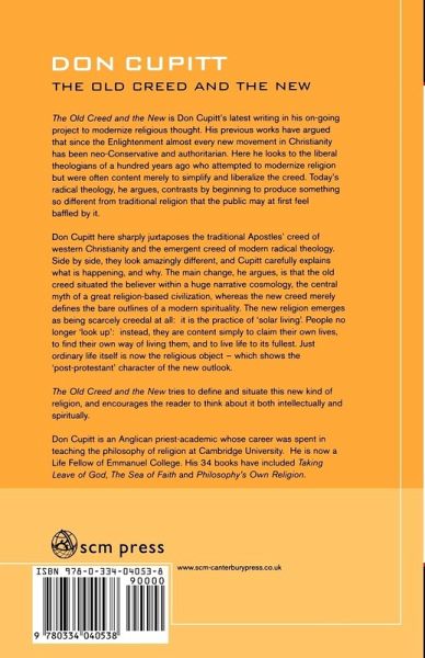 The Old Creed and the New is Don Cupitt's latest writing in his on-going project to modernize religious thought. His previous works have argued that since the Enlightenment almost every new movement in Christianity has been neo-Conservative and authoritarian. Here he looks to the liberal theologians of a hundred years ago who attempted to modernize religion but were often content merely to simplify and liberalize the creed. Today's radical theology, he argues, contrasts by beginning to produce something so different from traditional religion that the public may at first feel baffled by it. Don Cupitt here sharply juxtaposes the traditional Apostles' creed of western Christianity and the emergent creed of modern radical theology. Side by side, they look amazingly different, and Cupitt carefully explains what is happening, and why. The main change, he argues, is that the old creed situated the believer within a huge narrative cosmology, the central myth of a great religion-based civilization, whereas the new creed merely defines the bare outlines of a modern spirituality. The new religion emerges as being scarcely creedal at all: it is the practice of 'solar living'. People no longer 'look up': instead, they are content simply to claim their own lives, to find their own way of living them, and to live life to its fullest. Just ordinary life itself is now the religious object - which shows the 'post-protestant' character of the new outlook. The Old Creed and the New tries to define and situate this new kind of religion, and encourages the reader to think about it both intellectually and spiritually.