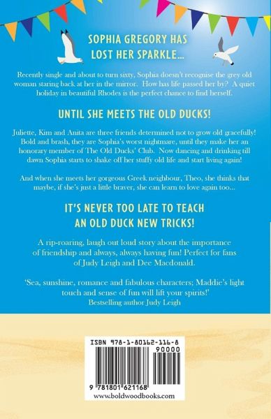 'Sea, sunshine, romance and fabulous characters; Maddie's light touch and sense of fun will lift your spirits!' Bestselling author Judy Leigh Sophia Gregory has lost her sparkle... Recently single and about to turn sixty, Sophia doesn't recognise the old woman staring back at her in the mirror. How has life passed her by? A quiet holiday in beautiful Rhodes is the perfect chance for her to find herself. Until she meets the Old Ducks! Juliette, Kim and Anita are three friends who are determined not to grow old gracefully! Bold and brash, they are Sophia's worse nightmare, until they make her an honorary member of The Old Ducks' Club! Now dancing and drinking till dawn Sophia starts to shake off her stuffy old life and start living again! And when she meets her gorgeous Greek neighbour, Theo, she thinks that maybe, if she's just a little braver, she can learn to love again too... It's never too late to teach an Old Duck new tricks! A rip-roaring, laugh out loud story about the importance of friendship and always, always having fun! Perfect for fans of Judy Leigh and Dee Macdonald What readers are saying about The Old Ducks' Club... 'Sea, sunshine, romance and fabulous characters; Maddie's light touch and sense of fun will lift your spirits!' Bestselling author Judy Leigh.