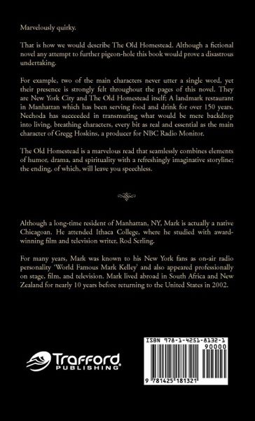 Marvelously quirky. That is how we would describe The Old Homestead. Although a fictional novel any attempt to further pigeon-hole this book would prove a disastrous undertaking. For example, two of the main characters never utter a single word, yet their presence is strongly felt throughout the pages of this novel. They are New York City and The Old Homestead itself; A landmark restaurant in Manhattan which has been serving food and drink for over 150 years. Nechoda has succeeded in transmuting what would be mere backdrop into living, breathing characters, every bit as real and essential as the main character of Gregg Hoskins, a producer for NBC Radio Monitor. The Old Homestead is a marvelous read that seamlessly combines elements of humor, drama, and spirituality with a refreshingly imaginative storyline; the ending, of which, will leave you speechless.
