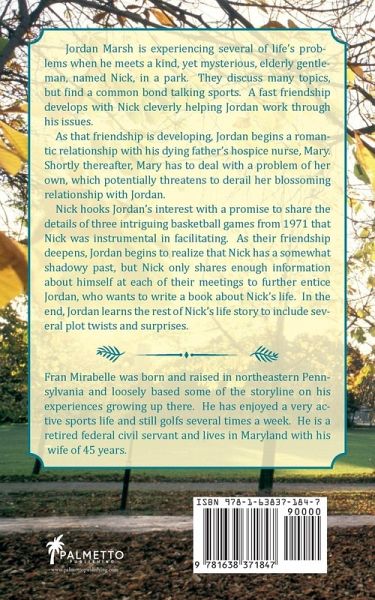 Jordan Marsh is experiencing several of life's problems when he meets a kind, yet mysterious, elderly gentleman, named Nick, in a park. They discuss many topics, but find a common bond talking sports. A fast friendship develops with Nick cleverly helping Jordan work through his issues. As that friendship is developing, Jordan begins a romantic relationship with his dying father's hospice nurse, Mary. Shortly thereafter, Mary must deal with a problem of her own, which potentially threatens to derail her blossoming relationship with Jordan. Nick hooks Jordan's interest with a promise to share the details of three intriguing basketball games from 1971 that Nick was instrumental in facilitating. As their friendship deepens, Jordan begins to realize that Nick has a somewhat shadowy past, but Nick only shares enough information about himself at each of their meetings to further entice Jordan, who wants to write a book about Nick's life. In the end, Jordan learns the rest of Nick's life story to include several plot twists and surprises.