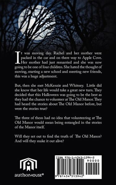 It was moving day. Rachel and her mother were packed in the car and on there way to Apple Cove. Her mother had just remarried and she was now going to be one of four children. She hated the thought of moving, starting a new school and meeting new friends, this was a huge adjustment. But, then she met McKenzie and Whitney. Little did she know that her life would take a great new turn. They decided that this Halloween was going to be the best as they had the chance to volunteer at The Old Manor. They had heard the stories about The Old Manor before, but were the stories true? The three of them had no idea that volunteering at The Old Manor would mean being entangled in the stories of the Manor itself. Will they set out to find the truth of The Old Manor? And will they make it out alive?