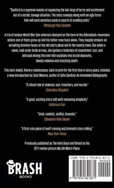 "Sanford is a supreme master at squeezing the last drop of terror and excitement out of a sordid, savage situation. The story sweeps along with an ugly force that will send sensitive souls in search of smelling salts." Pittsburgh Post-Gazette A trio of vicious World War One veterans descend on the farm in the Adirondack mountains where one of them grew up and his father now lives alone. They embark on happily wreaking drunken havoc at the old man's place and in the nearby town. But when a naive, mail-order bride arrives, she ignites a tinderbox of resentment, lust, and betrayal among the men that explodes in brutal depravity, bloody violence and shocking death. This hard-boiled, literary masterpiece, back in print for the first time in sixty years, includes a new introduction by Jack Mearns, author of John Sanford: An Annotated Bibliography Previously published as The Hard Guys and filmed as the 1971 motion picture My Old Man's Place. "A robust tale of violence, lust, treachery and murder" Columbus Dispatch "A good, exciting story told with menacing simplicity." Baltimore Sun "A first-rate piece of swift-moving and dramatic story-telling in restrained and effective modern American prose." New York Times "In an era of brutal fiction, The Old Man's Place will take a prize for brutality. Sanford writes well. He has a talent for it. He is vivid, realistic, skillful, dramatic." Cleveland Plain Dealer
