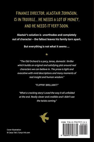 Finance Director, Alastair Johnson, is in trouble. He needs a lot of money, and he needs it very soon. Alastair's solution is unorthodox and completely out of character – the fallout leaves his family torn apart. But everything is not what it seems ... -------------------------- "It reads like a fast-paced and twisting thriller, but built around rich complex characters and dotted with beautiful, often moving, descriptions of feelings and place. I loved the short, punchy chapters and easy format. Very original." "What a cracking story! I especially enjoyed the way it all unfolded at the end. Really clever and credible and I didn't see the twists coming - very well done!" "As in his previous book, 'Best Eaten Cold', Tony Salter captures our attention and keeps it, as the story unfolds chapter by chapter. Full of lovely prose, characters that you feel you know and some surprise twists and turns, this is a truly sumptuous and satisfying read." "FLIPPIN' BRILLIANT!" "The Old Orchard is a pacy, tense, domestic thriller which builds an original and satisfying plot around real characters we can believe in. The prose is light and evocative with vivid descriptions and many moments of real insight and human wisdom." "This is a different book from the author's debut, although the author's originality and individual style remains. The Old Orchard is not quite as dark and twisted – at least not on the surface – but it is an equally compelling read. Flipping between 1995 and 2017, the exciting plot develops and holds the reader's attention as we learn how easy it is for a family to break itself in two. We also learn to care what happens to the characters and there are plenty of moments of genuine human emotion to move us."