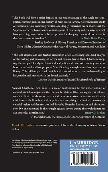 The Haitian Revolution (1789-1804) was an epochal event that galvanized slaves and terrified planters throughout the Atlantic world. Rather than view this tumultuous period solely as a radical rupture with slavery, Malick W. Ghachem's innovative study shows that emancipation in Haiti was also a long-term product of its colonial legal history. Ghachem takes us deep into this volatile colonial past, digging beyond the letter of the law and vividly re-enacting such episodes as the extraordinary prosecution of a master for torturing and killing his slaves. This book brings us face-to-face with the revolutionary invocation of Old Regime law by administrators seeking stability, but also by free people of color and slaves demanding citizenship and an end to brutality. The result is a subtle yet dramatic portrait of the strategic stakes of colonial governance in the land that would become Haiti.