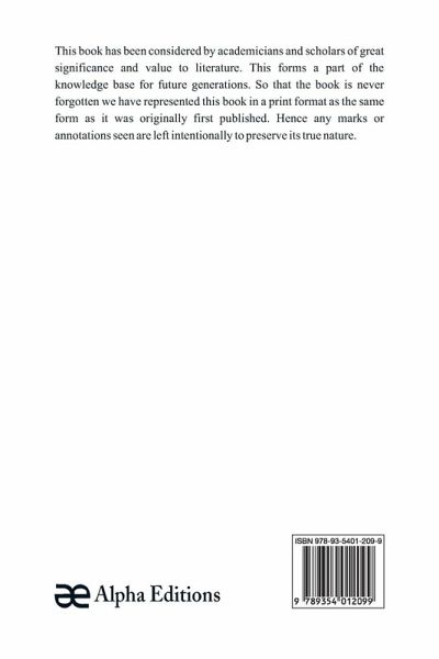 This book has been considered by academicians and scholars of great significance and value to literature. This forms a part of the knowledge base for future generations. So that the book is never forgotten we have represented this book in a print format as the same form as it was originally first published. Hence any marks or annotations seen are left intentionally to preserve its true nature.