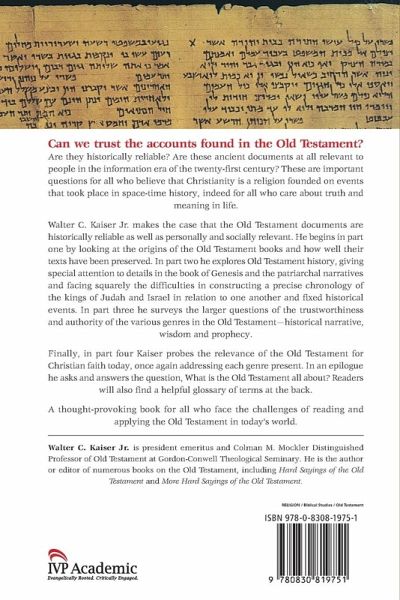 Can you trust what you read in the Old Testament?Are its documents historically reliable?Are its teachings relevant in the twenty-first century? These are important questions for all who believe that Christianity is a religion founded on events that took place in space-time history, indeed for all who care about truth and meaning in life.In this thought-provoking book Walter C. Kaiser Jr. makes the case that the Old Testament documents are both historically reliable and personally and socially relevant. He begins by looking at the origins of the Old Testament books and how well their texts were preserved. Next he explores Old Testament history, giving close attention to the book of Genesis, the patriarchal narratives, and the chronicles of the kings of Judah and Israel. He then surveys the larger questions of the trustworthiness and authority of the various Old Testament genres: historical narrative, wisdom and prophecy. Lastly, Kaiser probes the relevance of the Old Testament for Christian faith today. And in an epilogue he asks--and answers--the question "What is the Old Testament all about?"Here is a helpful, even essential, book to help you face the challenges of reading and applying the Old Testament in today's world.