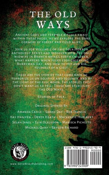 Ancient gods and terrible rituals await within these pages, as we explore the dark corners of forest and field alike. Join us for Volume 2 of this Folk Horror anthology series and discover how the only midwife in Branch brings forth children, what happens when folks stop observing Burryman Day, and how to try and rid yourself of a giest. These are the stories that come back to terrorize us on solstice and equinox, and by the light of the full moon. The stories they don't want us to tell. These are stories of the Old Ways. Stories of Folk.