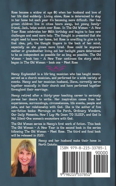 Nancy Kuykendall is a life-long musician who has taught music, served consistently as a church musician, and performed for a wide variety of events. Nancy and her musician husband, Steve, serve together in their church and have performed together throughout their marriage. Nancy retired after a thirty-year teaching career to seriously pursue her desire to write. Her inspiration comes from her experiences, surroundings, circumstances, life events, people and pets, and her relationship with God. She is the author of five other non-fiction books: Mornings on the Porch, Ordinary Wonders, Our Daily Moments, Now I Lay Me Down TO SLEEP, and God is Not Silent - One woman's encounters with God. She has written a fictional series: The Old Woman - Book One - Meet Rose, The Old Woman - Book Two - A New Year, and The Old Woman - Book Three - A Time of Change. Nancy and her husband make their home in North Dakota.