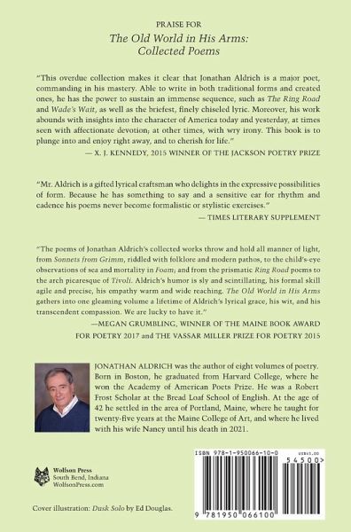 This volume showcases the life work of someone X.J. Kennedy has called "a major poet, commanding in his mastery." Excelling in both lyric and narrative modes, Jonathan Aldrich's poems from the 1960s and '70s seem fresh today. At the start, his voice was authoritative, lively, and unpretentious, his language both sensual and thoughtful. Aldrich's later poetry deepens his style and continues his engagement with themes such as the meaning of time and our responsibility to the past. This "collected poems" reprints in full the detective narrative Wade's Wait, along with generous selections from other books, including his extended lyrical sequence The Ring Road. It also gives us two long poems for the first time: Tivoli and Owed to Finnegans Wake. The final section, "New and Selected," draws mainly from his last books and unpublished late poems, poetry that reveals a writer involved in the lives of family and friends, generally hopeful, but sometimes reflecting on the fragility of our human world. Although Aldrich composed in many moods, his earliest published poem may stand as a demonstration of his ability to convey the drama of everyday life in language that speeds the mind forward. Using terms from the at times surprisingly violent lawn game croquet, he helps us experience a moment of social confusion, one that many writers know well. CROQUET LOVER AT THE DINNER TABLE (at a Writers' Conference) She passes muffins, orders the most remote and sudden relishes, comments on the one particular poem you meant to keep entirely undiscussed, or interrupts your train of silence with a stab of curiosity on what you plan to do next year if love or money won't come through, as if it were a game to find you out: to slam you out of court, to rout the field, dislodge the set-up shot, provoke your aim, suggest a change of rules until you feel immeasurably behind because her eyes are never wicketed, dead on nobody and poison to the last. Again and again in his poetry, Aldrich takes us to a familiar world suddenly illuminated in an unfamiliar light. In his early short sequence "A Shaker Girl (c. 1850)," he shows us the youthful struggles of a girl living a simple life in a Shaker village. "Walking Home," surely among the most striking sestinas ever composed, is a quiet meditation on social belonging and spiritual risk. The setting is foreign to us but the internal tension in the girl's narration is thoroughly recognizable. It isn't possible to speak of an "immature" stage in Aldrich's development as a publishing poet. The later poems do, however, broaden the scope of imaginative concern, tending to treat of whole lives rather than moments. Wade's Wait is a series of detective adventures, but it is also an assessment of Wade's life--or of three lives, as the third section (Pool Shot) is presented from the perspective of a man who has developed into Wade's secret enemy, and the fourth (The Shade Trees) from that of Wade's wife in the months prior to their engagement. In The Ring Road and Foam, Aldrich turns his attention to the details of his own life. With the perspicacity of a haiku artist, he finds meaning and amusement in scenes that seem to come back to him in a flash. Underneath this specificity--even in his treatment of Ted, the unlikable anti-hero of the long Pushkinian near-satire Tivoli--we sense the upswell of Aldrich's love of life. The final section of that poem is as open-hearted a vision as any crafty poet has devised. Here, as elsewhere, Aldrich's wisdom is at one with his joy.
