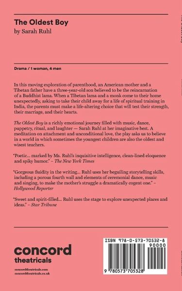 In this moving exploration of parenthood, an American mother and a Tibetan father have a three-year-old son believed to be the reincarnation of a Buddhist lama. When a Tibetan lama and a monk come to their home unexpectedly, asking to take their child away for a life of spiritual training in India, the parents must make a life-altering choice that will test their strength, their marriage, and their hearts. The Oldest Boy is a richly emotional journey filled with music, dance, p