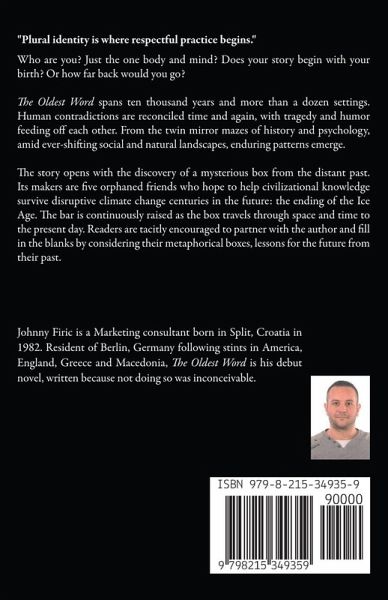 "Plural identity is where respectful practice begins." Who are you? Just the one body and mind? Does your story begin with your birth? Or how far back would you go? The Oldest Word spans ten thousand years and more than a dozen settings. Human contradictions are reconciled time and again, with tragedy and humor feeding off each other. From the twin mirror mazes of history and psychology, amid ever-shifting social and natural landscapes, enduring patterns emerge. The story opens with the discovery of a mysterious box from the distant past. Its makers are five orphaned friends who hope to help civilizational knowledge survive disruptive climate change centuries in the future: the ending of the Ice Age. The bar is continuously raised as the box travels through space and time to the present day. Readers are tacitly encouraged to partner with the author and fill in the blanks by considering their metaphorical boxes, lessons for the future from their past.