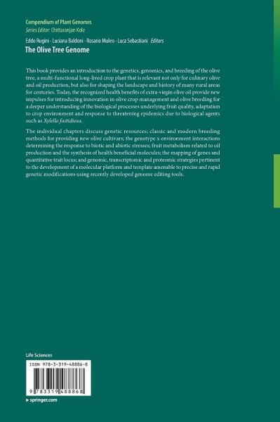 This book provides an introduction to the genetics, genomics, and breeding of the olive tree, a multi-functional long-lived crop plant that is relevant not only for culinary olive and oil production, but also for shaping the landscape and history of many rural areas for centuries. Today, the recognized health benefits of extra-virgin olive oil provide new impulses for introducing innovation in olive crop management and olive breeding for a deeper understanding of the biological processes underlying fruit quality, adaptation to crop environment and response to threatening epidemics due to biological agents such as Xylella fastidiosa.