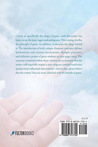 Clarity or specifically the ology of game, until this point, has been, to say the least, vague and ambiguous. This writing clarifies the principle of game. In addition, it also puts the ology behind it. The introduction of truly unique character concepts, defense mechanisms and counter mechanisms, thought processes, and definitive points of great wisdom are just pages away. The contents contained within these volumes are so dynamic that the writers will hopefully inspire a new subgenre entitled nonfiction (perspectival, influential observations). And on that, please believe that the writers' lives are more enriched with the benefit of game.