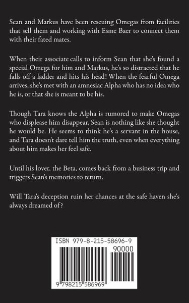 Sean and Markus have been rescuing Omegas from facilities that sell them and working with Esme Baer to connect them with their fated mates. When their associate calls to inform Sean that she's found a special Omega for him and Markus, he's so distracted that he falls off a ladder and hits his head! When the fearful Omega arrives, she's met with an amnesiac Alpha who has no idea who he is, or that she is meant to be his. Though Tara knows the Alpha is rumored to make Omegas who displease him disappear, Sean is nothing like she thought he would be. He seems to think he's a servant in the house, and Tara doesn't dare tell him the truth, even when everything about him makes her feel safe. Until his lover, the Beta, comes back from a business trip and triggers Sean's memories to return. Will Tara's deception ruin her chances at the safe haven she's always dreamed of?