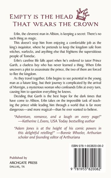 Erlin, the cleverest man in Albion, is keeping a secret: there's no such thing as magic. This doesn't stop him from enjoying a comfortable job as the king's inquisitor, where he pretends to keep the kingdom safe from witches, warlocks, and anything else that frightens the superstitious people of Tomelac. Erlin's carefree life falls apart when he's ordered to tutor Prince Garth, a clueless boy who has never learned a thing. When Erlin uncovers a plot to assassinate the prince, the two of them are forced to flee the kingdom. As they travel together, Erlin begins to see potential in the young man as a future king. But their journey is complicated by the arrival of Morrigin, a mysterious woman who confounds Erlin at every turn, causing him to question everything he knows. Deciding that Garth is the best hope for the dark times that have come to Albion, Erlin takes on the impossible task of teaching the prince while leading him through a world more dangerous-and more magical-than he ever wanted to believe.