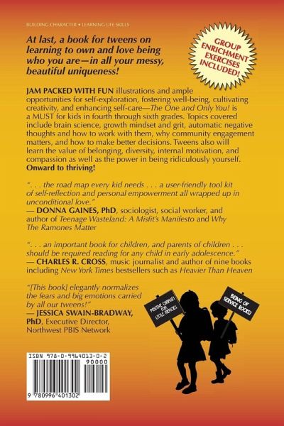 At last, a book for tweens on learning to own and love being who you are--in all your messy, beautiful uniqueness! Jam packed with fun illustrations, ample opportunities for self-exploration, and open spaces for creativity--The One and Only You! is an "emotions workbook" for kids in fourth through sixth grades. Topics include: brain science growth mindset and grit automatic negative thoughts and how to work with them why community engagement matters how to make better decisions Tweens also will learn the value of belonging, diversity, internal motivation, and compassion as well as the power in being ridiculously yourself. Given current rates of teen depression, anxiety, and suicide--and the fact that anxiety affects nearly one-third of adolescents today--The One and Only You! arms kids early enough in their lives with social-emotional skills that they might reach their teen years resilient and ready to talk back to their negative thoughts. The One and Only You! also features an appendix for teachers, counselors, youth group leaders, parents, and other caring adults of innovative group enrichment activities for enhancing classroom social-emotional learning for tweens.