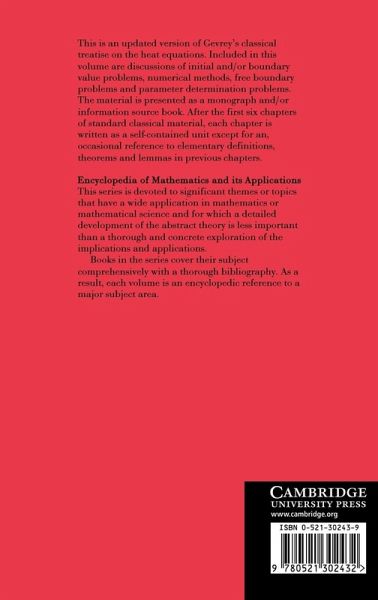 This is an updated version of Gevrey's classical treatise on the heat equations. Included in this volume are discussions of initial and/or boundary value problems, numerical methods, free boundary problems and parameter determination problems. The material is presented as a monograph and/or information source book. After the first six chapters of standard classical material, each chapter is written as a self-contained unit except for an, occasional reference to elementary definitions, theorems and lemmas in previous chapters.