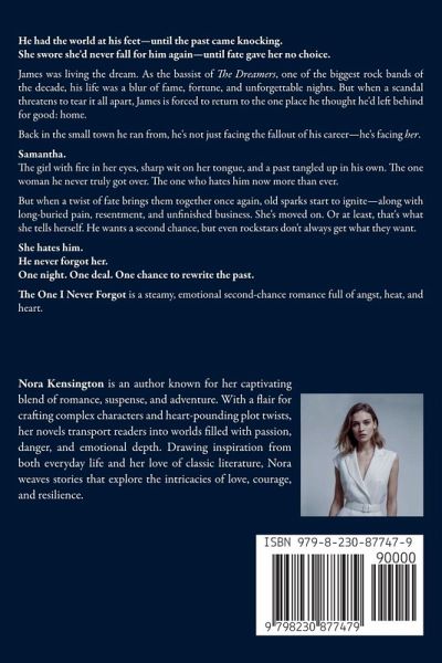 He had the world at his feet-until the past came knocking. She swore she'd never fall for him again-until fate gave her no choice. James was living the dream. As the bassist of The Dreamers, one of the biggest rock bands of the decade, his life was a blur of fame, fortune, and unforgettable nights. But when a scandal threatens to tear it all apart, James is forced to return to the one place he thought he'd left behind for good: home. Back in the small town he ran from, he's not just facing the fallout of his career-he's facing her. Samantha. The girl with fire in her eyes, sharp wit on her tongue, and a past tangled up in his own. The one woman he never truly got over. The one who hates him now more than ever. But when a twist of fate brings them together once again, old sparks start to ignite-along with long-buried pain, resentment, and unfinished business. She's moved on. Or at least, that's what she tells herself. He wants a second chance, but even rockstars don't always get what they want. She hates him. He never forgot her. One night. One deal. One chance to rewrite the past. The One I Never Forgot is a steamy, emotional second-chance romance full of angst, heat, and heart.