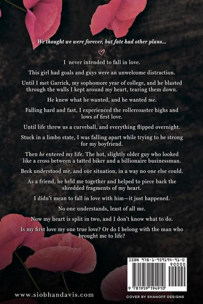 We thought we were forever, but fate had other plans... I never intended to fall in love. This girl had goals and guys were an unwelcome distraction. Until I met Garrick, my sophomore year of college, and he blasted through the walls I kept around my heart, tearing them down. He knew what he wanted, and he wanted me. Falling hard and fast, I experienced the rollercoaster highs and lows of first love. Until life threw us a curveball, and everything flipped overnight. Stuck in a limbo state, I was falling apart while trying to be strong for my boyfriend. Then he entered my life. The hot, slightly older guy who looked like a cross between a tatted biker and a billionaire businessman. Beck understood me, and our situation, in a way no one else could. As a friend, he held me together and helped to piece back the shredded fragments of my heart. I didn't mean to fall in love with him-it just happened. No one understands, least of all me. Now my heart is split in two, and I don't know what to do. Is my first love my one true love? Or do I belong with the man who brought me to life?