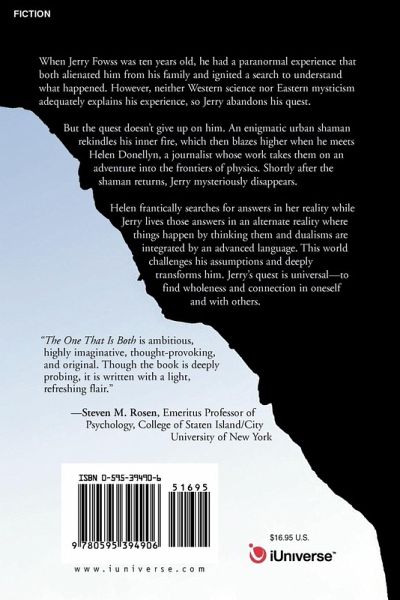 When Jerry Fowss was ten years old, he had a paranormal experience that both alienated him from his family and ignited a search to understand what happened. However, neither Western science nor Eastern mysticism adequately explains his experience, so Jerry abandons his quest. But the quest doesn't give up on him. An enigmatic urban shaman rekindles his inner fire, which then blazes higher when he meets Helen Donellyn, a journalist whose work takes them on an adventure into the frontiers of physics. Shortly after the shaman returns, Jerry mysteriously disappears. Helen frantically searches for answers in her reality while Jerry lives those answers in an alternate reality where things happen by thinking them and dualisms are integrated by an advanced language. This world challenges his assumptions and deeply transforms him. Jerry's quest is universal-to find wholeness and connection in oneself and with others. The One That Is Both is ambitious, highly imaginative, thought-provoking, and original. Though the book is deeply probing, it is written with a light, refreshing flair." -Steven M. Rosen, Emeritus Professor of Psychology, College of Staten Island/City University of New York
