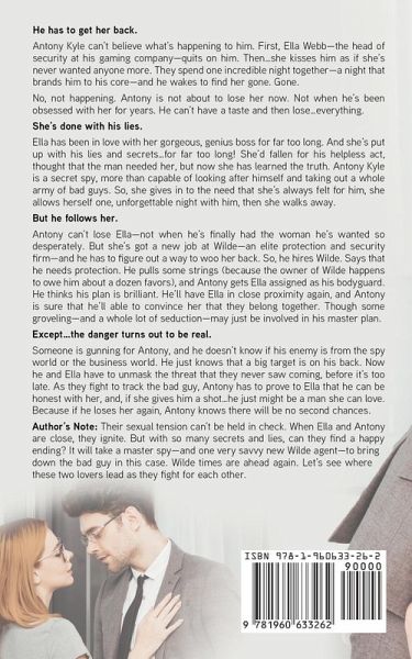 He has to get her back. Antony Kyle can't believe what's happening to him. First, Ella Webb-the head of security at his gaming company-quits on him. Then...she kisses him as if she's never wanted anyone more. They spend one incredible night together-a night that brands him to his core-and he wakes to find her gone. Gone. No, not happening. Antony is not about to lose her now. Not when he's been obsessed with her for years. He can't have a taste and then lose...everything. She's done with his lies. Ella has been in love with her gorgeous, genius boss for far too long. And she's put up with his lies and secrets...for far too long! She'd fallen for his helpless act, thought that the man needed her, but now she has learned the truth. Antony Kyle is a secret spy, more than capable of looking after himself and taking out a whole army of bad guys. So, she gives in to the need that she's always felt for him, she allows herself one, unforgettable night with him, then she walks away. But he follows her. Antony can't lose Ella-not when he's finally had the woman he's wanted so desperately. But she's got a new job at Wilde-an elite protection and security firm-and he has to figure out a way to woo her back. So, he hires Wilde. Says that he needs protection. He pulls some strings (because the owner of Wilde happens to owe him about a dozen favors), and Antony gets Ella assigned as his bodyguard. He thinks his plan is brilliant. He'll have Ella in close proximity again, and Antony is sure that he'll be able to convince her that they belong together. Though some groveling-and a whole lot of seduction-may just be involved in his master plan. Except...the danger turns out to be real. Someone is gunning for Antony, and he doesn't know if his enemy is from the spy world or the business world. He just knows that a big target is on his back. Now he and Ella have to unmask the threat that they never saw coming, before it's too late. As they fight to track the bad guy, Antony has to prove to Ella that he can be honest with her, and, if she gives him a shot...he just might be a man she can love. Because if he loses her again, Antony knows there will be no second chances. Author's Note: Their sexual tension can't be held in check. When Ella and Antony are close, they ignite. But with so many secrets and lies, can they find a happy ending? It will take a master spy-and one very savvy new Wilde agent-to bring down the bad guy in this case. Wilde times are ahead again. Let's see where these two lovers lead as they fight for each other.