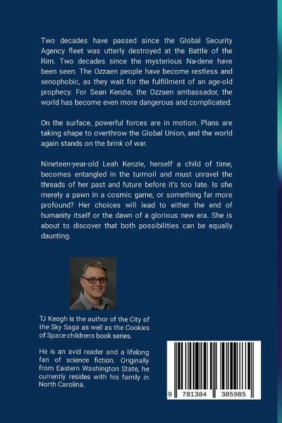 Two decades have passed since the Global Security Agency fleet was utterly destroyed at the Battle of the Rim. Two decades since the mysterious Na-dene have been seen. The Ozzaen people have become restless and xenophobic, as they wait for the fulfillment of an age-old prophecy. For Sean Kenzie, the Ozzaen ambassador, the world has become even more dangerous and complicated. On the surface, powerful forces are in motion. Plans are taking shape to overthrow the Global Union, and the world again stands on the brink of war. Nineteen-year-old Leah Kenzie, herself a child of time, becomes entangled in the turmoil and must unravel the threads of her past and future before it's too late. Is she merely a pawn in a cosmic game, or something far more profound? Her choices will lead to either the end of humanity itself or the dawn of a glorious new era. She is about to discover that both possibilities can be equally daunting.