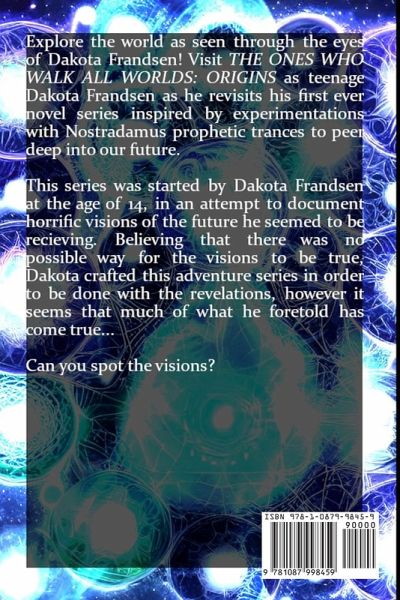 Book 1: Inspired by true events! Dakota Frandsen, a typical high school kid with secrets beyond what our world can understand. While moonlighting as a paranormal investigator, Dakota discovers that a secret organization has been watching him for a very long time. After using his secret abilities and alter egos to save the lives of his future wife and friends from his past, he joins the ranks of the secret organization in an effort to discover the meaning behind a prophecy that foretells a great war that brings about the end of the world! Book 2: Lives are officially on the line as the war continues to creep closer! Dakota's battles now force him into a difficult position leading him and all he holds dear into a seemingly never ending downward spiral of pure chaos unlike anything the planet has ever seen before! His relationships, his work, his future promises, and his very existence are extended to near god-like lengths as the war long foreseen leads to unprecedented bloodshed!Includes the special short, "Bound in Beijing." Book 3 & 4: Shandra Ford, daughter of Agent Ford. An abused young girl is taken in by a classmate she just barely met, Dakota Frandsen. The two see each other as kindred spirits, and quickly find out the same phantom image that has been haunting them is only the beginning of the future they are destined for. Now free from her abusive step father, Shandra quickly becomes a part of Dakota's world. At first it seems like an innocent journey into the unknown as she starts to take part in paranormal investigations, but she learns it is so much more than it seems when gods, monsters, and superpowers (on top of ghosts and demons) prove themselves to be very real.Shandra tries her best to comprehend this new world, quickly falling deeper in love with the man who she sees saved her life in the process. But as time goes on, she quickly sees that Dakota's actions and world could very well take his life at any moment, despite knowing his powers come to the rescue every time. This becomes apparent when the two take on a case when demons from the past come back with a vengeance. An experiment with the unknown, meant to harm a classmate who was famous for terrorizing others, comes back to claim the souls of those who participated. The circumstance prove to be deadly almost immediately, and gun shots have already been fired, will everyone survive?Includes the special short, "White Suicide."