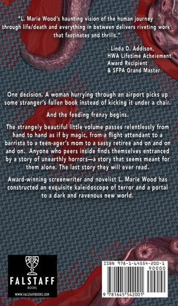 One decision. A woman hurrying through an airport picks up some stranger's fallen book instead of kicking it under a chair. And the feeding frenzy begins. The strangely beautiful little volume passes relentlessly from hand to hand as if by magic, from a flight attendant to a barrista to a teen-ager's mom to a sassy retiree and on and on and on. Anyone who peers inside finds themselves entranced by a story of unearthly horrors-a story that seems meant for them alone. The last story they will ever read. Award-winning screenwriter and novelist L. Marie Wood has constructed an exquisite kaleidoscope of terror and a portal to a dark and ravenous new world.