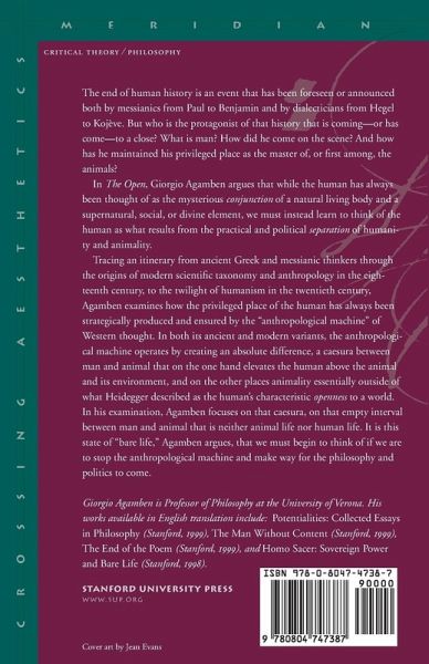 In "The Open", contemporary Italian philosopher Giorgio Agamben considers the ways in which the "human" has been thought of as either a distinct and superior type of animal, or a kind of being that is essentially different from animal altogether.