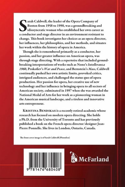 Sarah Caldwell, the leader of the Opera Company of Boston from 1958-1990, was a groundbreaking and idiosyncratic woman who established her own career as a conductor and stage director in an environment resistant to change. This book investigates her choices as an opera director, her influences, her philosophies, and her methods, and situates her work within the history of opera in America. Though she is remembered primarily as a conductor, her passion, and her greater influence on American opera, was through stage directing. With a repertoire that included ground-breaking interpretations of works such as Nono's Intolleranza 1960, Prokofiev's War and Peace, and Bernstein's Mass, Caldwell continually pushed her own artistic limits, provoked critics, intrigued audiences, and challenged the status quo of opera production. Her passion for opera, her creative use of new technology and her influence in bringing opera to all sectors of American society, culminated in 1997 when she was awarded the National Medal of Arts for her work as a pioneering woman in the American musical landscape, and a tireless and innovative arts entrepreneur.