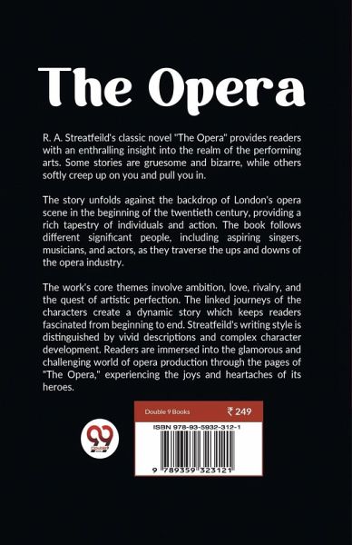 R. A. Streatfeild's classic novel "The Opera" provides readers with an enthralling insight into the realm of the performing arts. Some stories are gruesome and bizarre, while others softly creep up on you and pull you in. The story unfolds against the backdrop of London's opera scene in the beginning of the twentieth century, providing a rich tapestry of individuals and action. The book follows different significant people, including aspiring singers, musicians, and actors, as they traverse the ups and downs of the opera industry. The work's core themes involve ambition, love, rivalry, and the quest of artistic perfection. The linked journeys of the characters create a dynamic story which keeps readers fascinated from beginning to end. Streatfeild's writing style is distinguished by vivid descriptions and complex character development. Readers are immersed into the glamorous and challenging world of opera production through the pages of "The Opera," experiencing the joys and heartaches of its heroes.