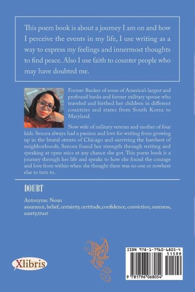 This poem book is about a journey I am on and how I perceive the events in my life, I use writing as a way to express my feelings and innermost thoughts to find peace. Also I use faith to counter people who may have doubted me.