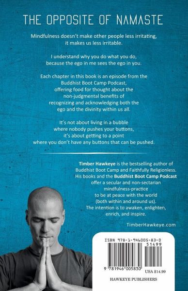 Mindfulness doesn't make other people less irritating, it makes us less irritable. I understand why you do what you do, because the ego in me sees the ego in you. Each chapter in this book is an episode from the Buddhist Boot Camp Podcast, offering food for thought about the non-judgmental benefits of recognizing and acknowledging both the ego and the divinity within us all. It's not about living in a bubble where nobody pushes your buttons, it's about getting to a point where you don't have any buttons that can be pushed.