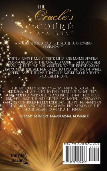 The Oracle's Court A magic trick. A guarded heart. A growing conspiracy. When a simple magic trick kills and maims several Underworlders in the Oracle's Court, Katya, and her team of elite Fae, are assigned to the investigation. Katya must use all her skills to find the truth, while keeping safe the one thing she swore would never break...her heart. The Fae Queen seeks answers and her squad of kickass Fae are sent to find them, but what they uncover is a web of lies and deceit that they must unravel...fast. The fate of the Enchanted Underworld and its continued hidden existence lies in the hands of these bold, brave, strong women. But affairs of the heart always complicate things. Steamy Mystery Paranormal Romance