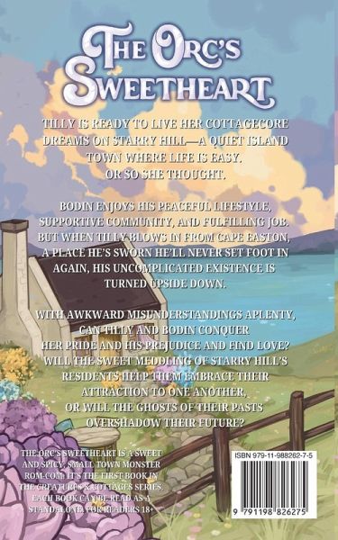 Tilly is ready to live her cottagecore dreams on Starry Hill-a quiet island town where life is easy. Or so she thought. Bodin enjoys his peaceful lifestyle, supportive community, and fulfilling job. But when Tilly blows in from Cape Easton, a place he's sworn he'll never set foot in again, his uncomplicated existence is turned upside down. With awkward misunderstandings aplenty, can Tilly and Bodin conquer her pride and his prejudice and find love? Will the sweet meddling of Starry Hill's residents help them embrace their attraction to one another, or will the ghosts of their pasts overshadow their future? The Orc's Sweetheart is a sweet and spicy, small town monster rom-com. It's the first book in the Creatures & Cottages series. Each book can be read as a standalone. For readers 18+