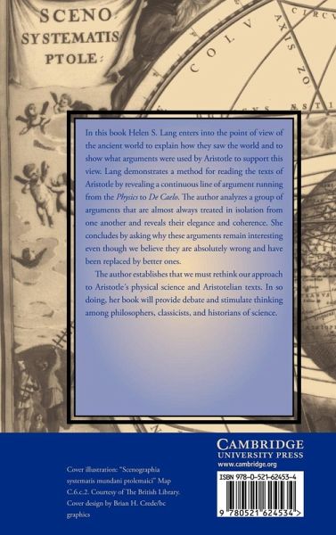 This 1999 book demonstrates a method for reading the texts of Aristotle by revealing a continuous line of argument running from the Physics to De Caelo. The author analyses a group of arguments that are almost always treated in isolation from one another, and reveals their elegance and coherence. She concludes by asking why these arguments remain interesting even though we now believe they are absolutely wrong and have been replaced by better ones. The book establishes the case that we must rethink our approach to Aristotle's physical science and Aristotelian texts, and as such will provoke debate and stimulate new thinking amongst philosophers, classicists, and historians of science.