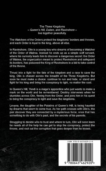 The Order of Walrea is the first installment to The Ash and Stone saga which chronicles an epic adventure across the Three Kingdoms, a land filled with conspiracy, magic, betrayal, and the machinations of fate. The Three Kingdoms - Queen's Hill, Duken, and Ravinshore - live side-by-side in hard-won peace. That peace is protected by the Orders, created to secure and safeguard each kingdoms' interests: the Order of the Three in Duken, the Order of the Red Flame in Queen's Hill, and the Order of Walrea in Ravinshore. But when Olin, a curious sciff servant, overhears a dangerous secret, the Three Kingdoms are thrust into a race against time to stop a conspiracy threatening the very foundation of the Orders, and the safety of the thrones. In a journey that crosses from one end of the Three Kingdoms to another, Olin's path converges with a wide cast of characters: Yondi, a mage's apprentice roped into helping Olin on his quest; Posdel, a mage trying to drown the shadows in his memory with drink; Levyna, a young mage coming into a dangerous power to dream the future and travel across the kingdoms at will; Isabelle, a sorceress called to save the life of the King of Ravinshore; and Gytha, a Grand Sorceress with a mysterious past and a devastating power. Facing an enemy that looms in every shadow, one whose reach extends far beyond the kingdoms' borders, these individuals connected by fate must decide who to trust as they work to thwart the conspiracy and protect the very foundation of their kingdoms. As destinies converge and unseen danger creeps closer to the thrones, they must stand together in the fight against one of the most powerful entities in the Three Kingdoms: the Order of Walrea.