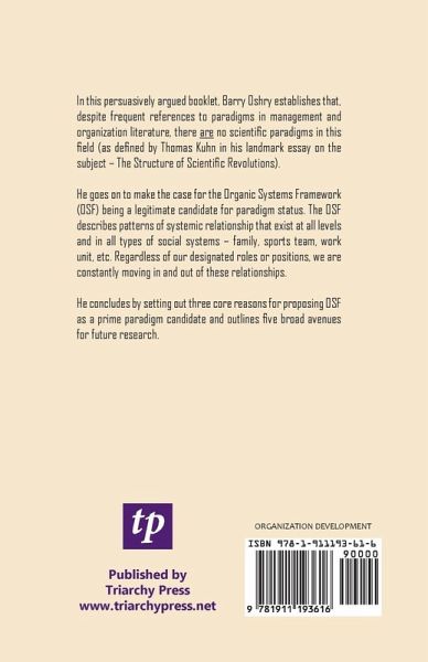 Barry Oshry shows that, despite many references to paradigms in the literature, there are no scientific paradigms (as defined by Thomas Kuhn) in management/organization theory and development. He then makes the case for the Organic System Framework as a legitimate candidate for paradigm status - from which further research naturally follows.