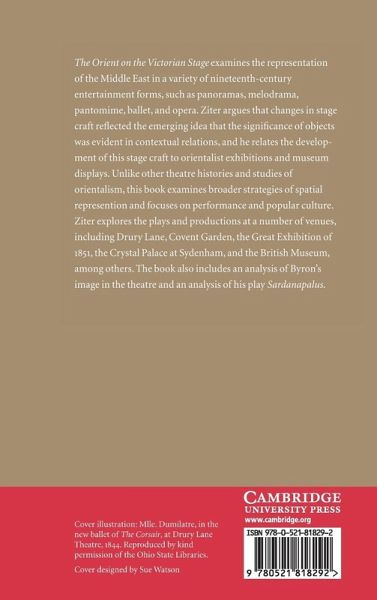 The Orient on the Victorian Stage examines the representation of the Middle East in a variety of nineteenth-century entertainment forms, such as panoramas, melodrama, pantomime, ballet and opera. Ziter argues that changes in stage craft reflected the emerging idea that the significance of objects was evident in contextual relations, and relates the development of this stage craft to orientalist exhibitions and museum displays. Unlike other theatre histories and studies of orientalism, this book examines broader strategies of spatial representation and focuses on performance and popular culture. Ziter explores the plays and productions at a number of venues, including Drury Lane, Covent Garden, the Great Exhibition of 1851, the Crystal Palace at Sydenham, and the British Museum, among others. The book also includes an analysis of Byron's image in the theatre and an analysis of his play Sardanapalus.