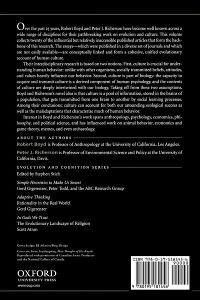 Oxford presents, in one convenient and coherently organized volume, 20 influential but until now relatively inaccessible articles that form the backbone of Boyd and Richerson's path-breaking work on evolution and culture. Their interdisciplinary research is based on two notions. First, that culture is crucial for understanding human behavior; unlike other organisms, socially transmitted beliefs, attitudes, and values heavily influence our behavior. Secondly, culture is part of biology: the capacity to acquire and transmit culture is a derived component of human psychology, and the contents of culture are deeply intertwined with our biology. Culture then is a pool of information, stored in the brains of the population that gets transmitted from one brain to another by social learning processes. Therefore, culture can account for both our outstanding ecological success as well as the maladaptations that characterize much of human behavior. The interest in this collection will span anthropology, psychology, economics, philosophy, and political science.