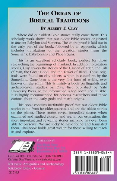 Where did our oldest Bible stories really come from? This scholarly work shows that our oldest Bible stories originated in ancient Babylon and Sumeria. The entire proof is laid out in the early part of the book, followed by an Appendix which includes translations of the creation stories from the Sumerians, Babylonians and Phoenicians. This is an excellent scholarly book, perfect for those researching the beginnings of mankind. In addition to creation stories, Clay covers the stories of the Garden of Eden, the Fall of Man, the Great Flood, and the Tower of Babel. These originals were found on clay tablets, written in cuneiform by the Sumerians. Cuneiform is the very first form of writing ever known on the earth. This is mainly a book on linguistic and archaeological studies by Clay, first published by Yale University Press, so the information is top notch and reliable. It is highly recommended for serious researchers and those curious about the early gods and man's origins. This book contains irrefutable proof that our oldest Bible stories came from far older sources, and are the oldest stories on the planet. These stories reveal incredible secrets when examined and studied closely, and are, in my estimation, the most important and revealing stories mankind has ever been able to preserve. We are lucky to have found and translated them. This book holds great wealth for those willing to reach in and explore.