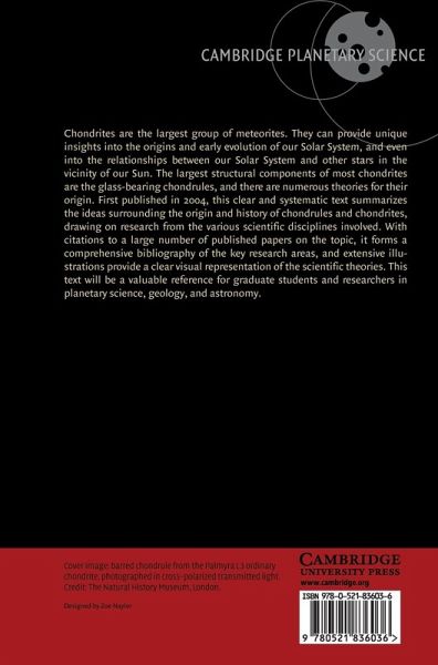 Chondrites are the largest group of meteorites. They can provide unique insights into the origins and early evolution of our Solar System, and even into the relationships between our Solar System and other stars in the vicinity of our Sun. The largest structural components of most chondrites are the glass-bearing chondrules, and there are numerous theories for their origin. This clear and systematic text summarizes the ideas surrounding the origin and history of chondrules and chondrites, drawing on research from the various scientific disciplines involved. With citations to a large number of published papers on the topic, it forms a comprehensive bibliography of the key research areas, and extensive illustrations provide a clear visual representation of the scientific theories. This text will be a valuable reference for graduate students and researchers in planetary science, geology, and astronomy.