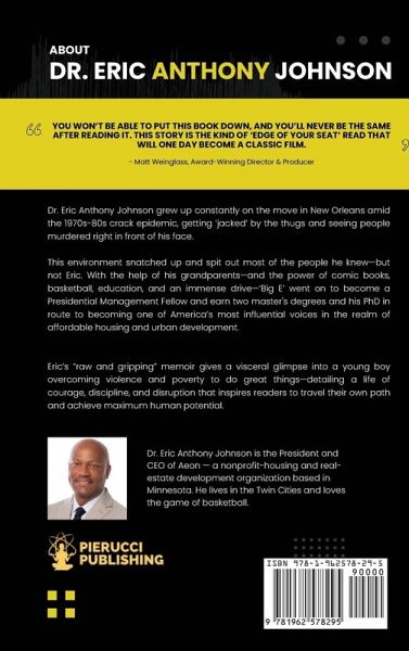 Eric Anthony Johnson grew up constantly on the move in New Orleans amid the 1970s-80s crack epidemic, getting "jacked" by the thugs and seeing people murdered right in front of his face. This environment snatched up and spit out most of the people he knew-but not Eric. With the help of his grandparents-and the power of comic books, basketball, education, and an immense drive-"Big E" went on to become a Presidential Management Fellow and earn two Master's Degrees and his PhD in route to becoming one of America's most influential voices in the realm of housing and urban development. Eric's raw and gripping memoir gives a visceral glimpse into the adolescent life of a young boy who overcame violence and poverty and went on to accomplish great things-detailing a life of courage, discipline, and disruption that inspires readers to travel their own path and fulfill their own maximum potential. "You won't be able to put this book down, and you'll never be the same after reading it. This story is the kind of 'edge of your seat' read that will one day become a classic film."- Matt Weinglass, Award-Winning Director & Producer