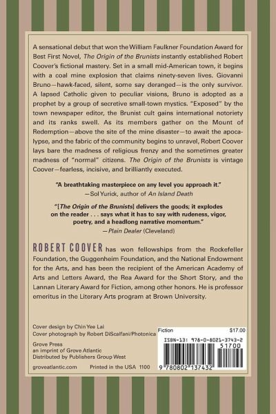 Originally published in 1969, Robert Coover's first novel instantly established his mastery. A coal-mine explosion in a small mid-American town claims ninety-seven lives. The only survivor, a peculiar man subject to religious visions, is adopted as a prophet and quickly gains a following. Rapidly disseminated through the magic of media exposure, the cult spreads across America, and as its members gather on the Mount of Redemption to await the apocalypse, Robert Coover lays bare the madness of religious frenzy and the sometimes greater madness of "normal" citizens. The Origin of the Brunists is vintage Coover -- comic, fearless, incisive, and brilliantly executed.